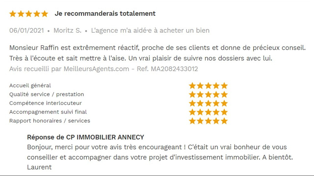 Avis 5 étoiles site Meilleurs agents pour agences immobilières à Annecy CP IMMOBILIER 06/01/2021
