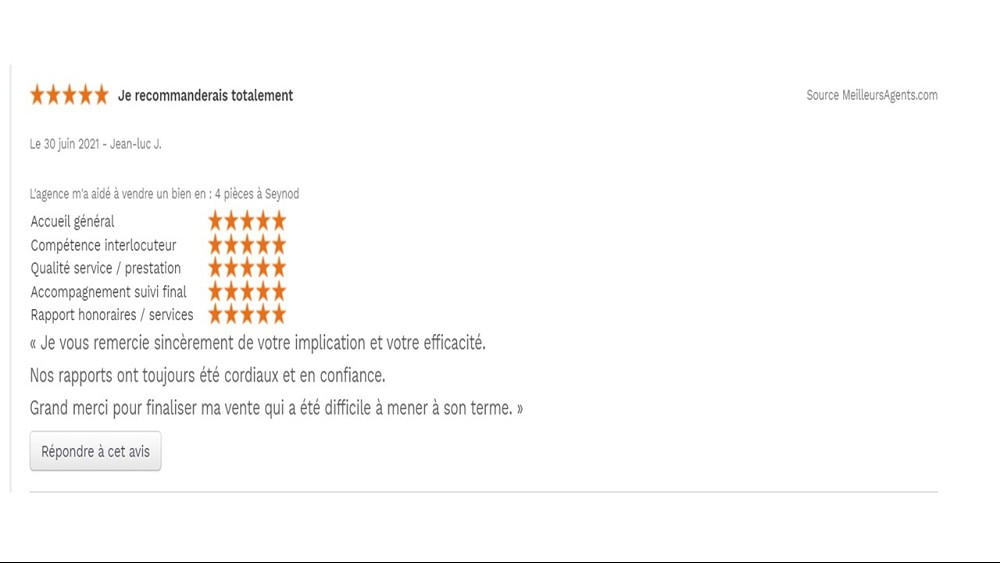 Avis 5 étoiles site Meilleurs agents pour agences immobilières à Annecy CP IMMOBILIER 30/06/2021